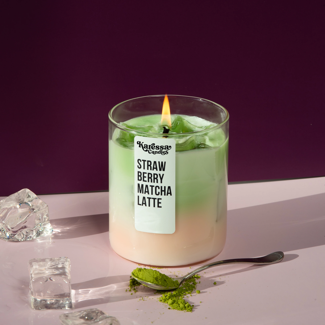 Strawberry Matcha Latte Candle Iced Strawberry Matcha Scented Handmade Candle Strawberry and Matcha Scented Candle