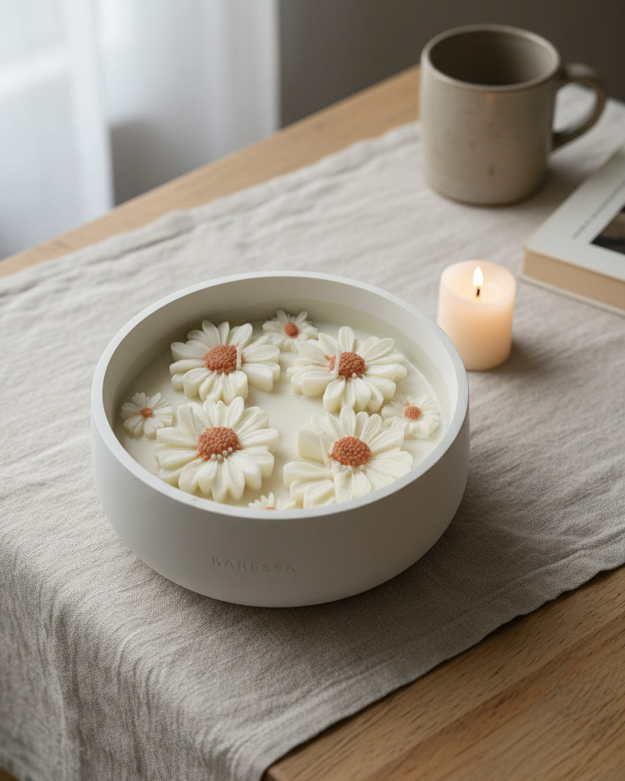 The most striking candle in the Karessa collection. A wide, elegant concrete urli bowl with hand-arranged florals on top — this is a centrepiece that transforms any room the moment it arrives. 27 customers call it their favourite purchase.