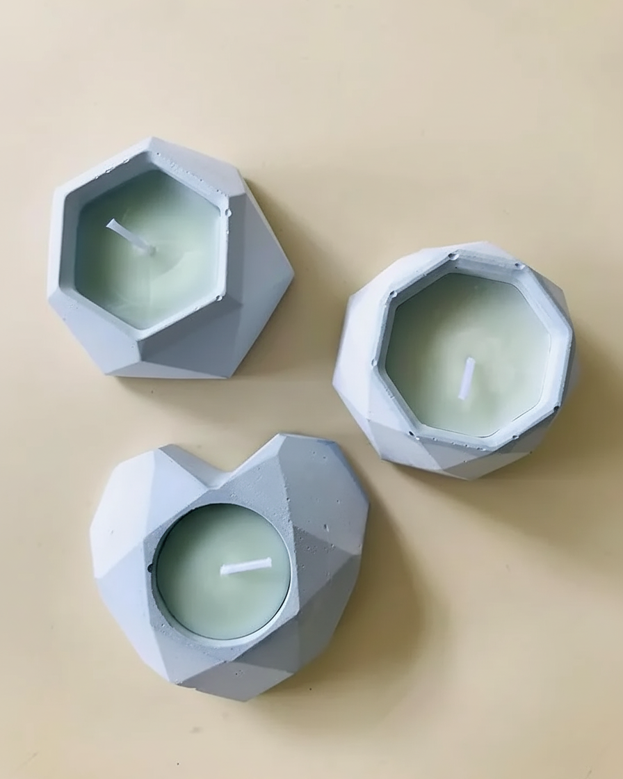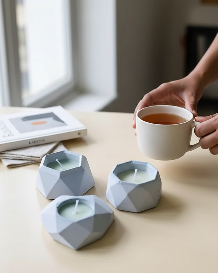 Three beautifully handmade soy wax candles in reusable concrete gypsum jars — for just ₹199. This pack gives you three different fragrances to enjoy across your home, and three jars you can reuse for plants, jewellery, or storage.