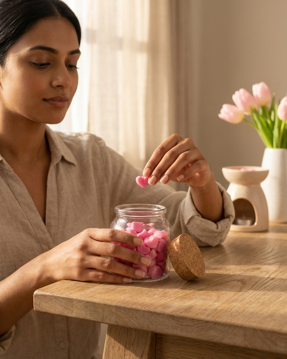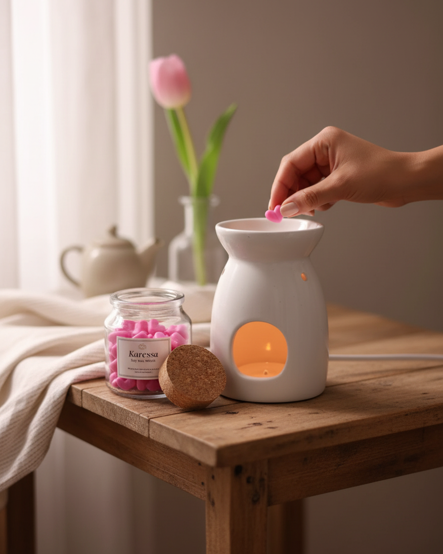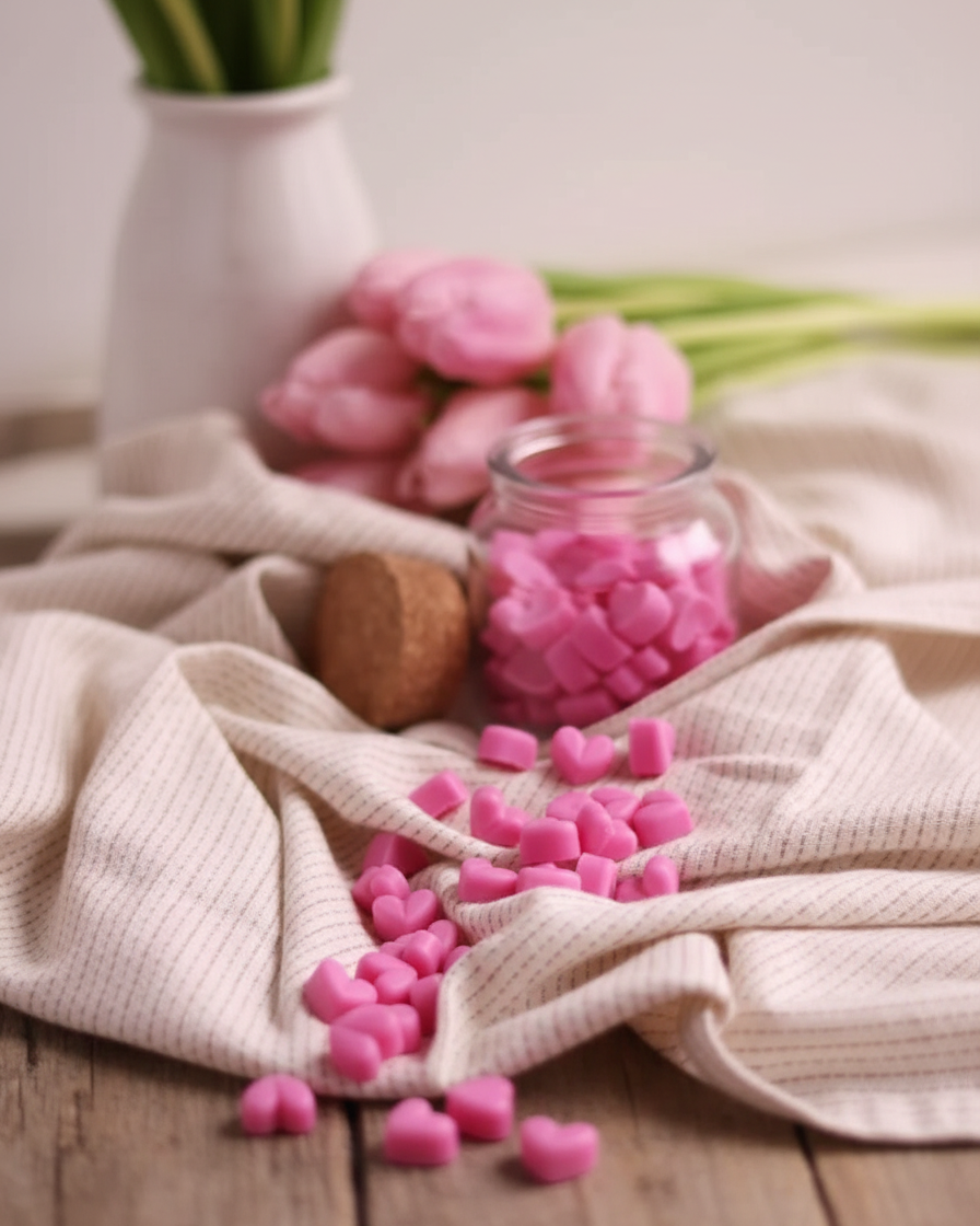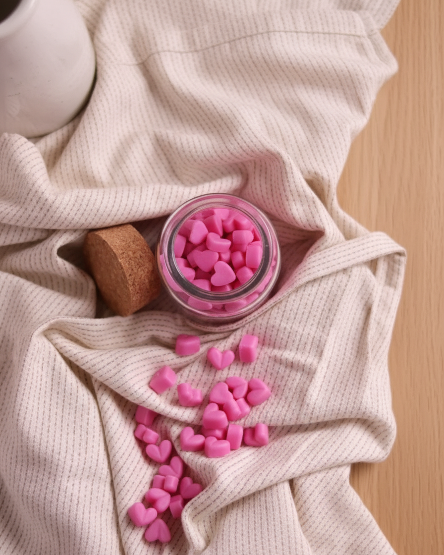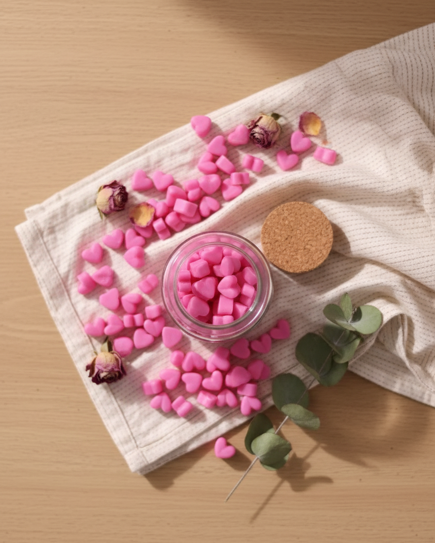 Heart-shaped wax melts in a beautiful jar — the no-flame fragrance solution from Karessa. Place a heart melt in any wax warmer and fill your home with beautiful fragrance. A whole jar means weeks of fragrant moments ahead.