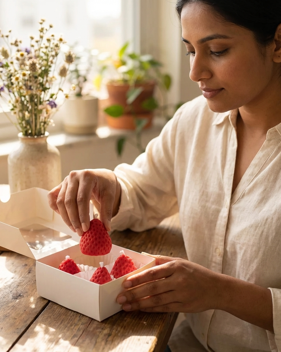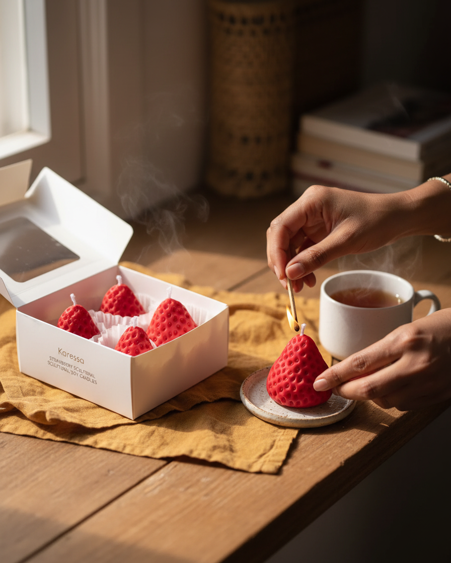 Sweet, bright, and full of summery energy — our Strawberry Candles pack of 4 fills your home with the irresistible scent of ripe strawberries. At ₹299 for four candles, each one works out to just ₹75.