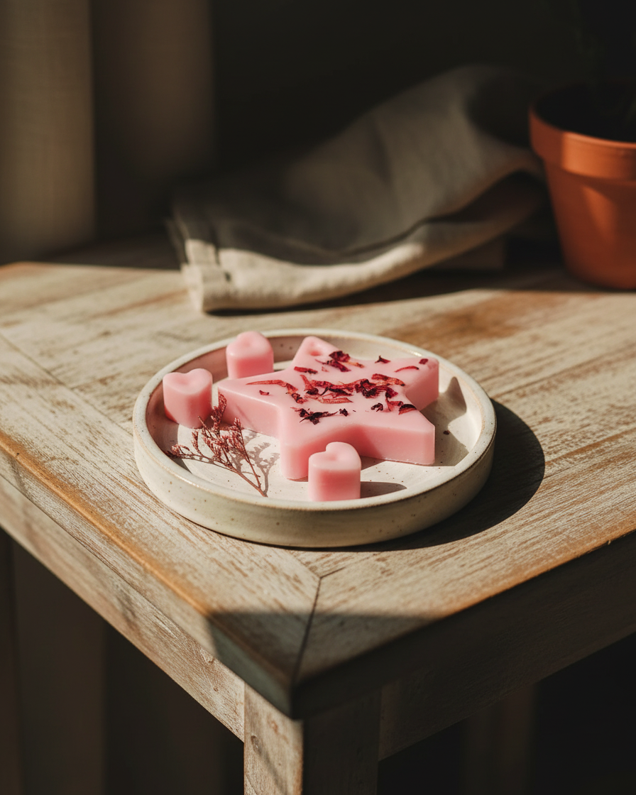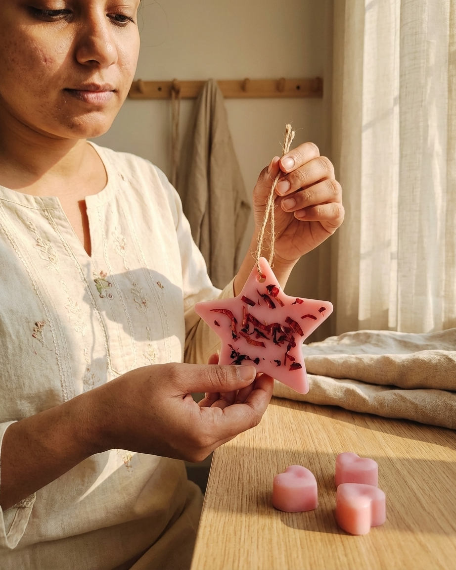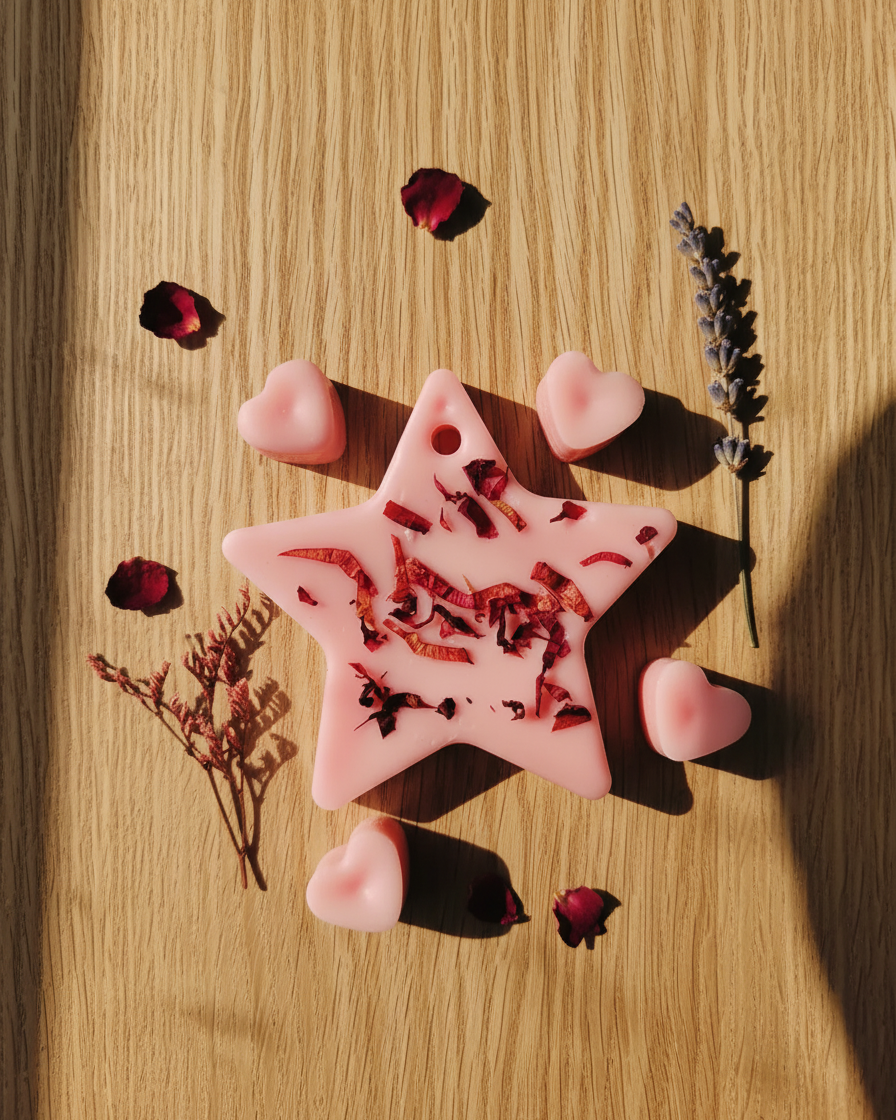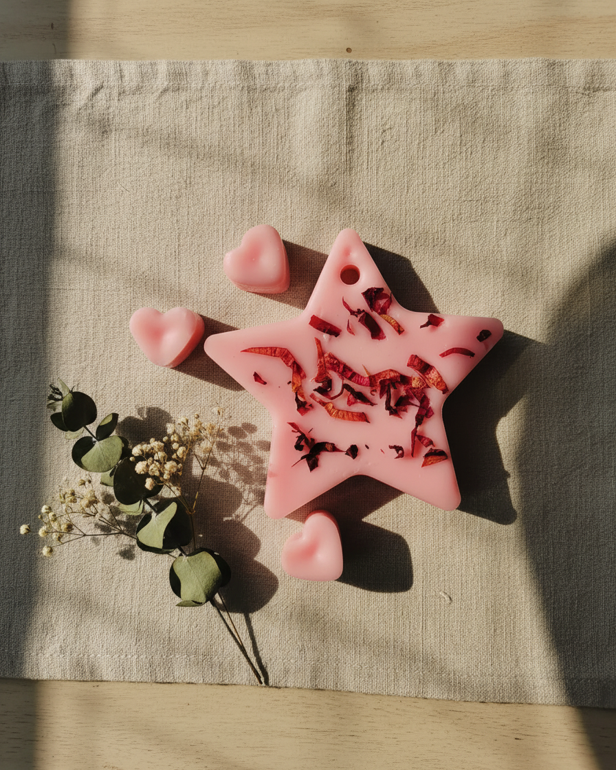 More than a candle — a fragrance piece. The Valentine's Star Sachet is a beautifully crafted wax tablet with a rose design that slowly releases fragrance in any space. Tuck it in a wardrobe, place it in a gift box, or hang it as a decorative fragrance piece.
