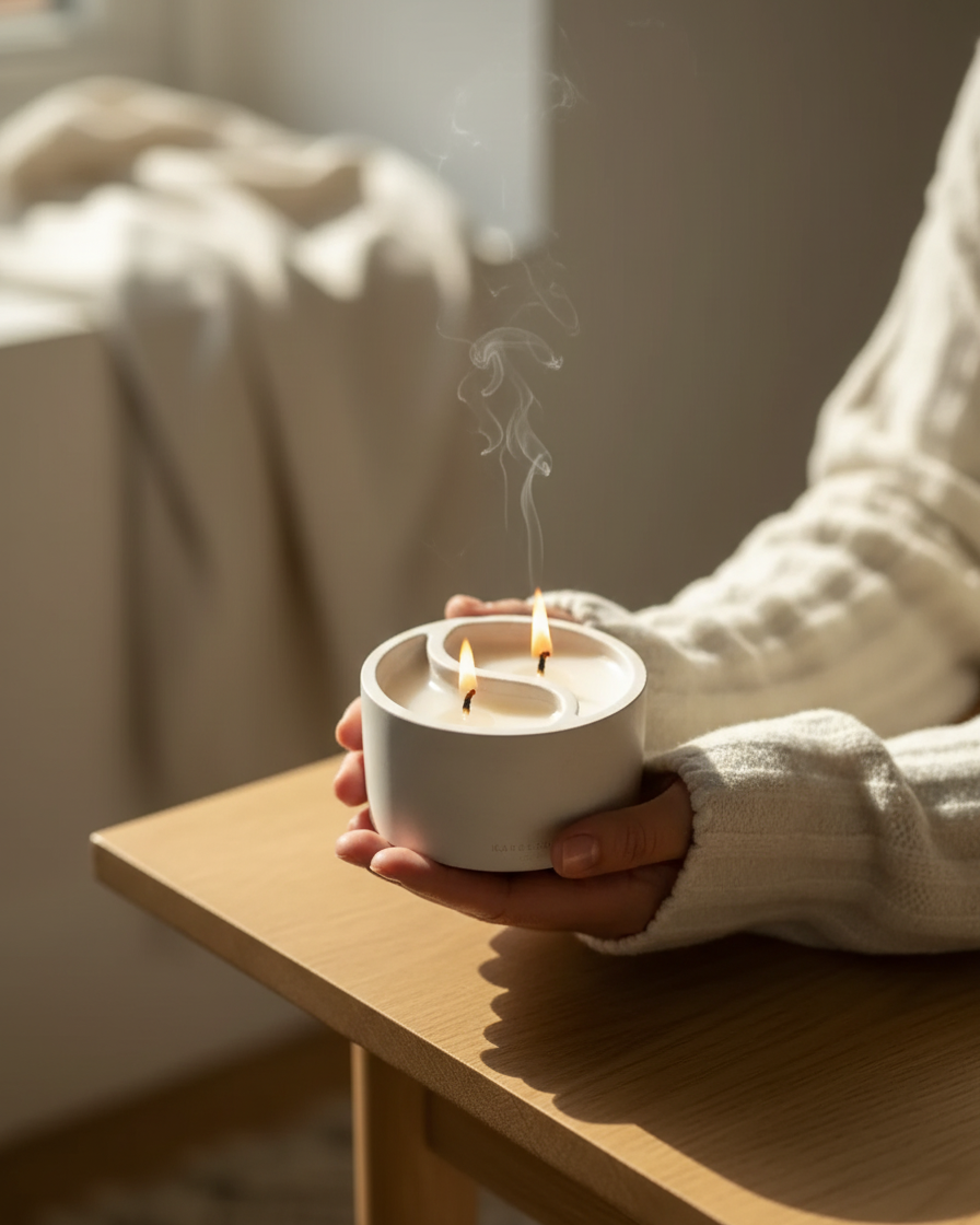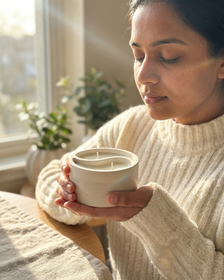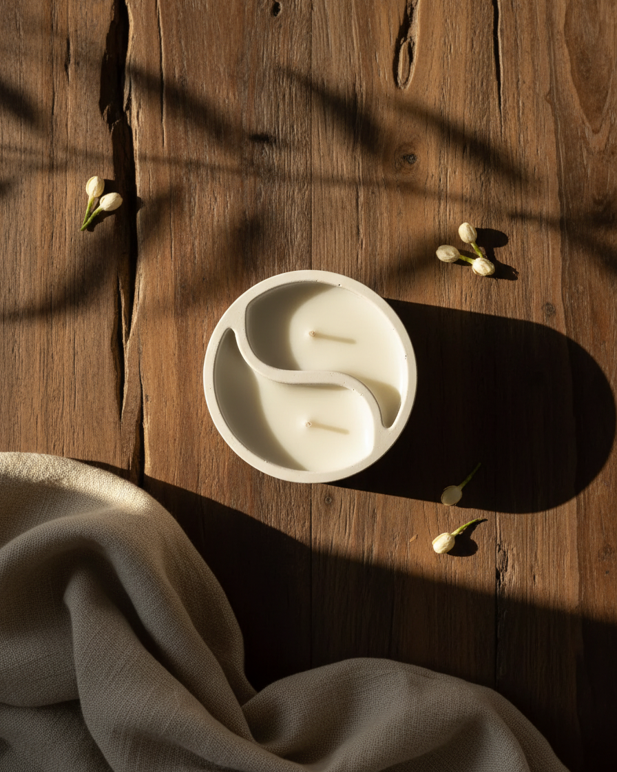 Balance in physical form. The Yin Yang concrete candle is crafted for those who appreciate harmony — in their space, their mind, and their fragrance. A beautiful wellness gift for yoga lovers, meditators, and anyone seeking calm.